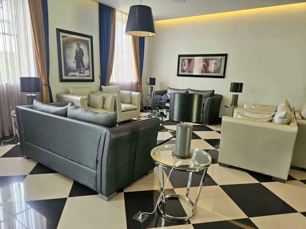 Logo que entramos, já nos surpreendemos com a decoração na recepção: