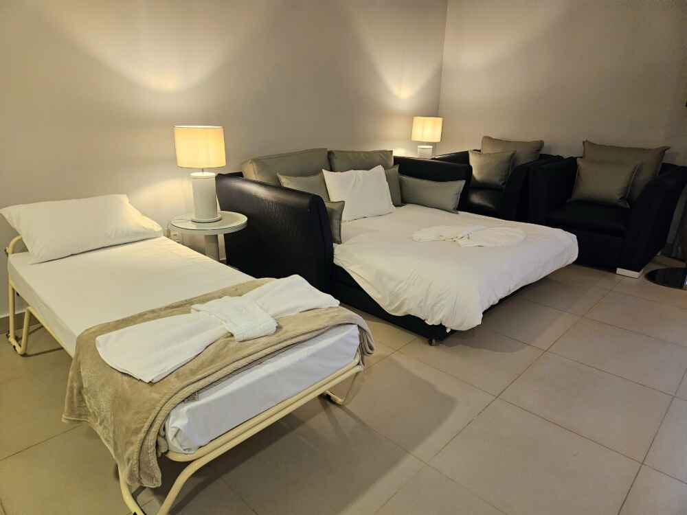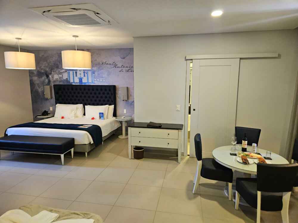 O hotel é composto por 311 quartos. Eu escolhi uma acomodação bem ampla com cama de casal, sofá cama, TV, mesa para trabalho e banheiro.