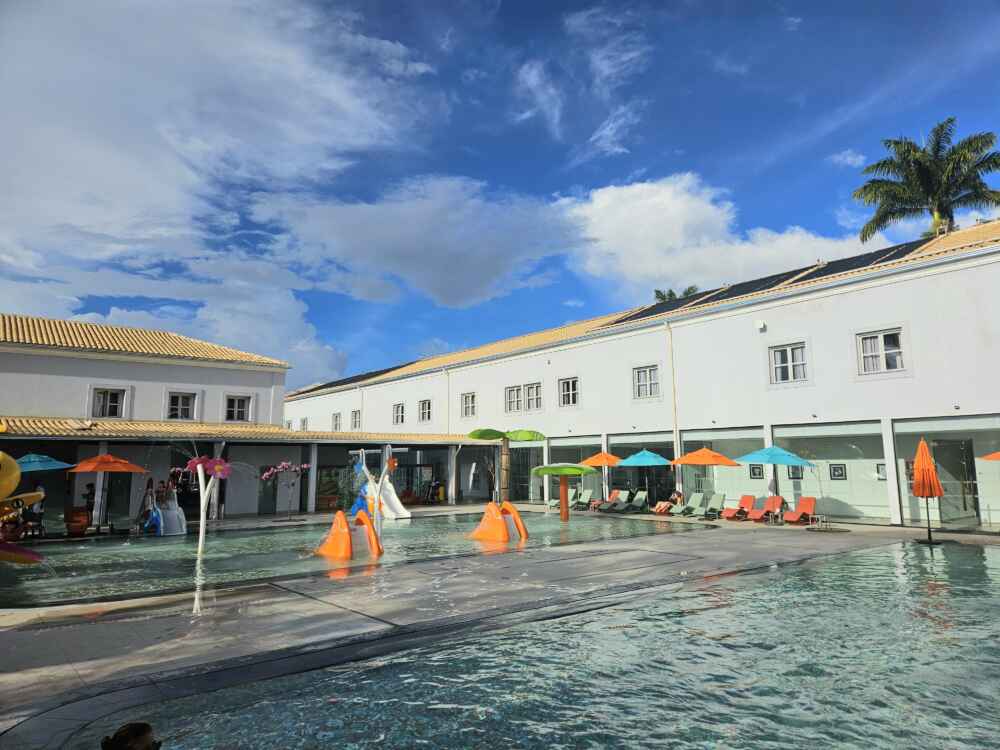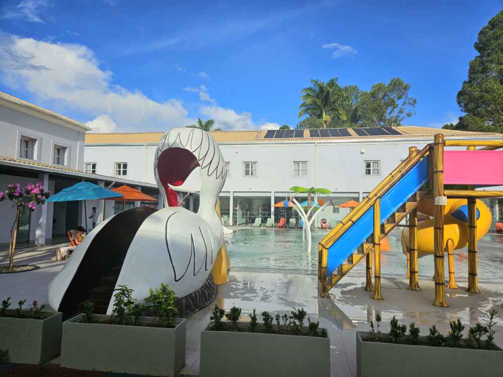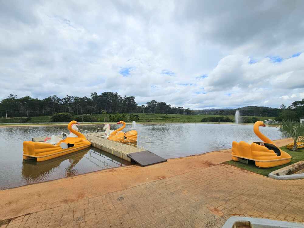 O complexo é tão grande, que tem também um lago com pedalinho, pista de kart, quadras poliesportivas e uma fazendinha: