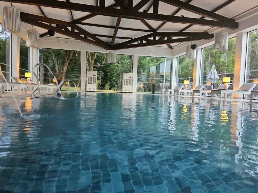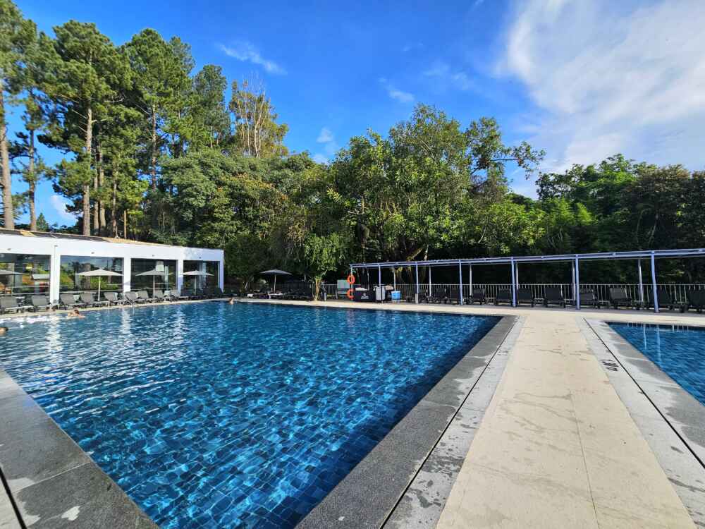 Há uma vasta gama de comodidades, incluindo cinco piscinas aquecidas, o Satsanga Spa & Wellness, uma área de eventos para até 900 pessoas e 15 hectares de plantação de vinha e olival.