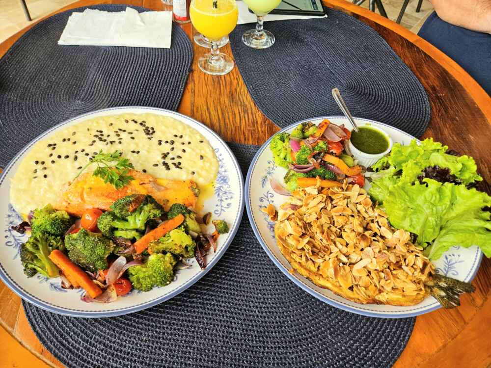 Uma sugestão de prato principal é a Truta na manteiga de amêndoas e o salmão grelhado com risoto de maracujá. São pratos bem caprichados!