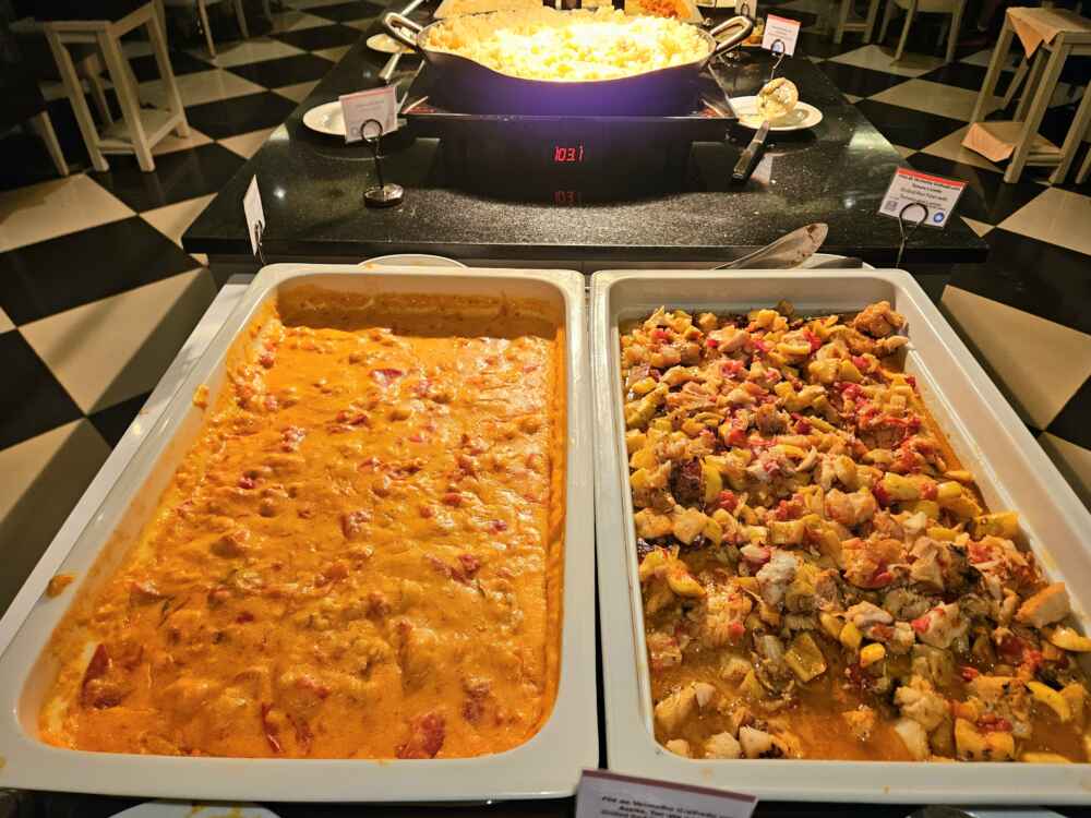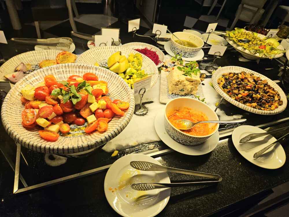 O jantar conta com buffet de saladas, pratos quentes e sobremesas.