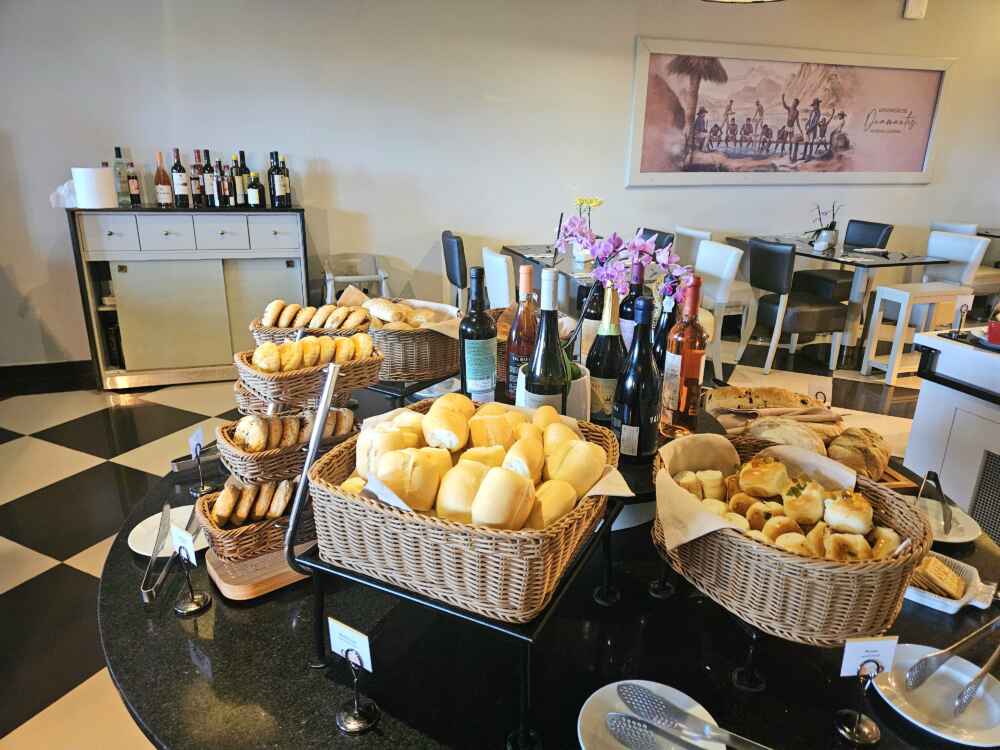 No restaurante Versátil, o café da manhã é estilo buffet e tem muita variedade. Fazem ovos e omelete na hora. Podemos também pedir vitamina com as frutas escolhidas.
