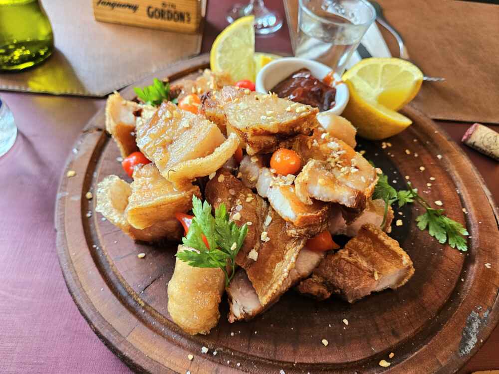Sugiro pedir o rocambole de porco, que é uma pancetta crocante acompanhada de molho barbecue de goiabada: