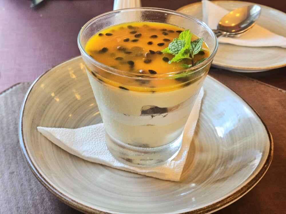A sobremesa que eu escolhi foi o pavê de maracujá: