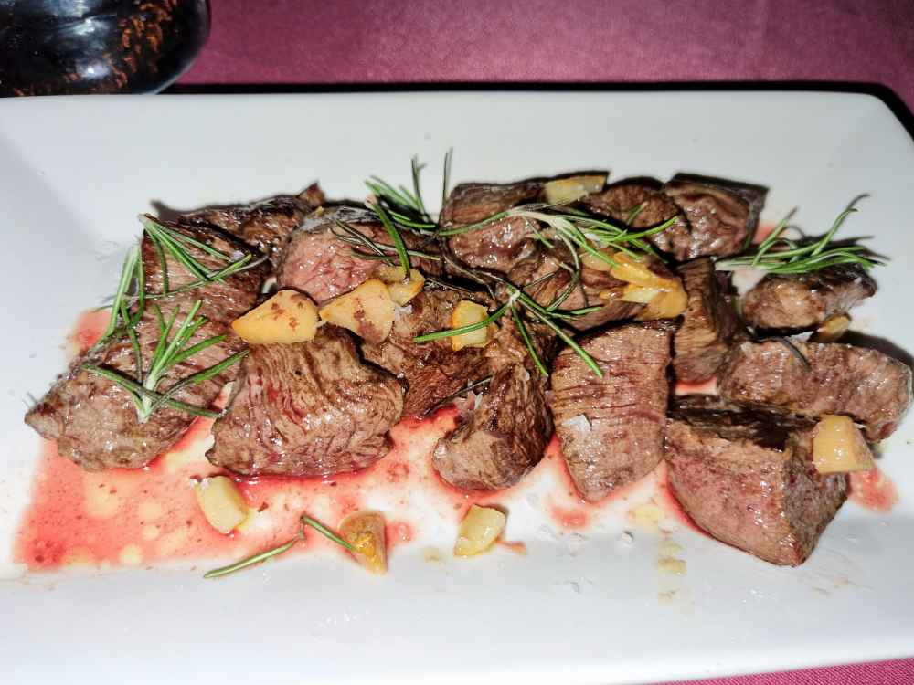 Eu comi Timbal de Rabo de Toro + solomillos salteados + camarões+ frios e sobremesa.