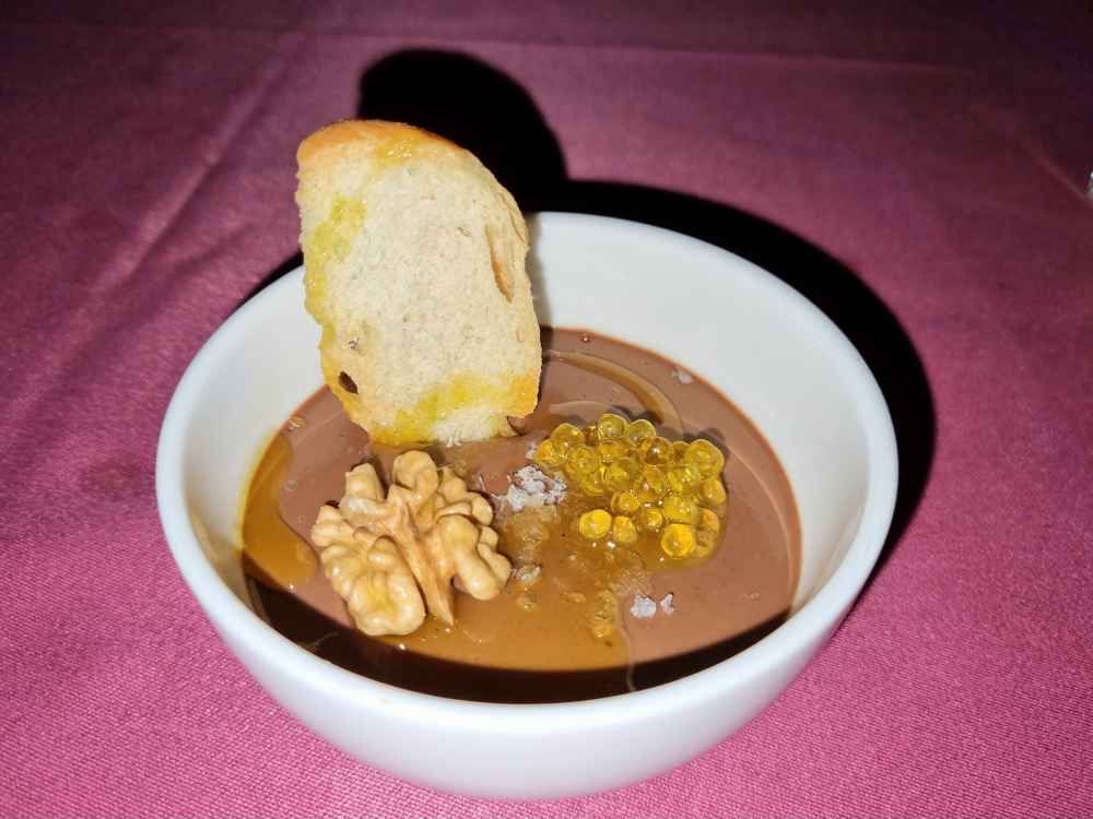 O último prato foi um mousse de chocolate com caviar. Bem diferente!