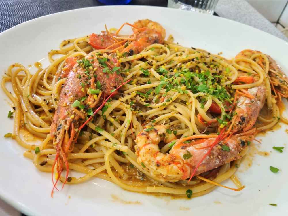 O cardápio conta com muitas opções de massas. Eu escolhi o linguine com camarões. Gostei!