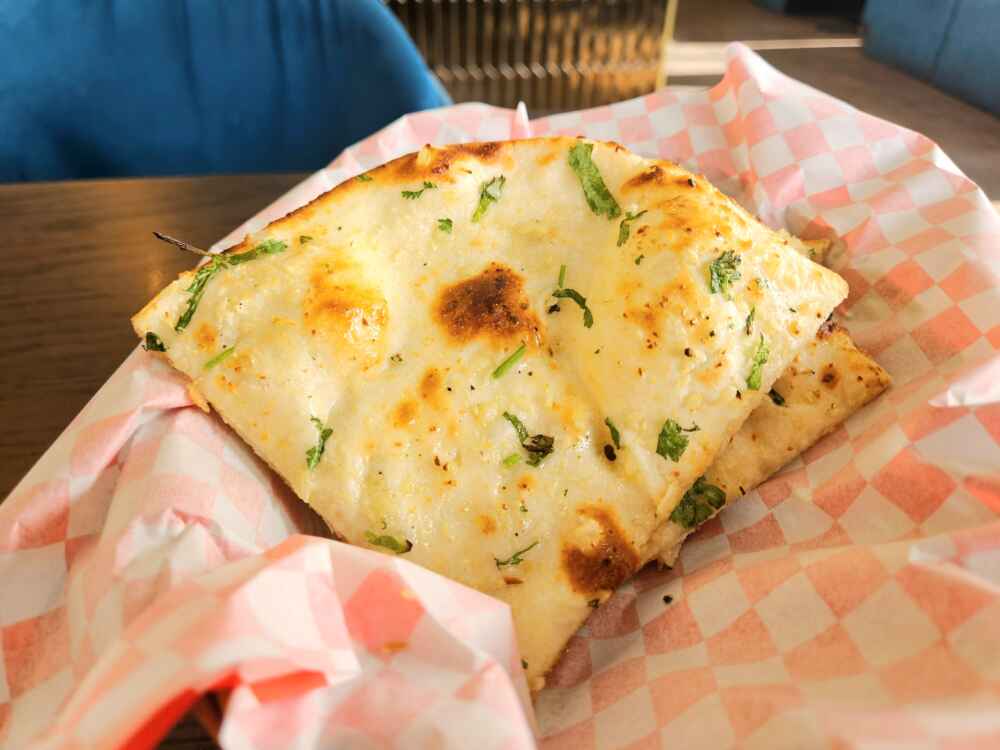 Lá eles fazem Garlic Naan, que é o pão indiano que eu gosto bastante.