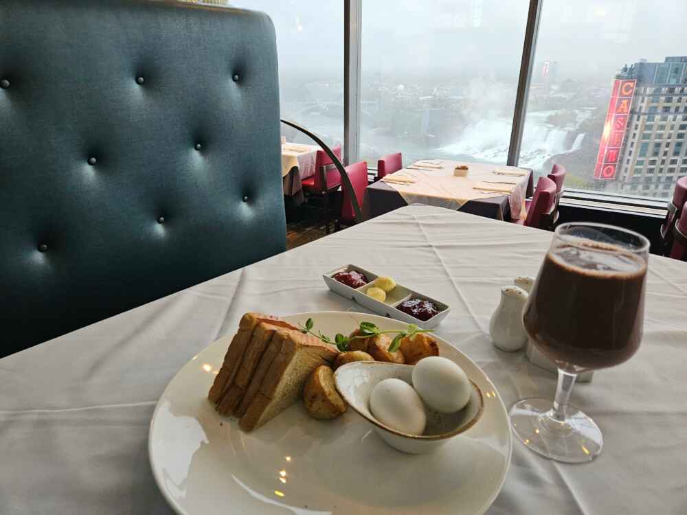 O café da manhã não é incluso na diária, mas vale a pena ir tomar café no Fallsview Breakfast at Hilton. Lá temos também uma vista bonita das cataratas e podemos comer bem tranquilos.