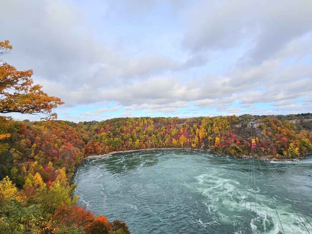 O Whirlpool Aero Car é um teleférico que atravessa o rio Niágara. A guia parou lá para fotos: