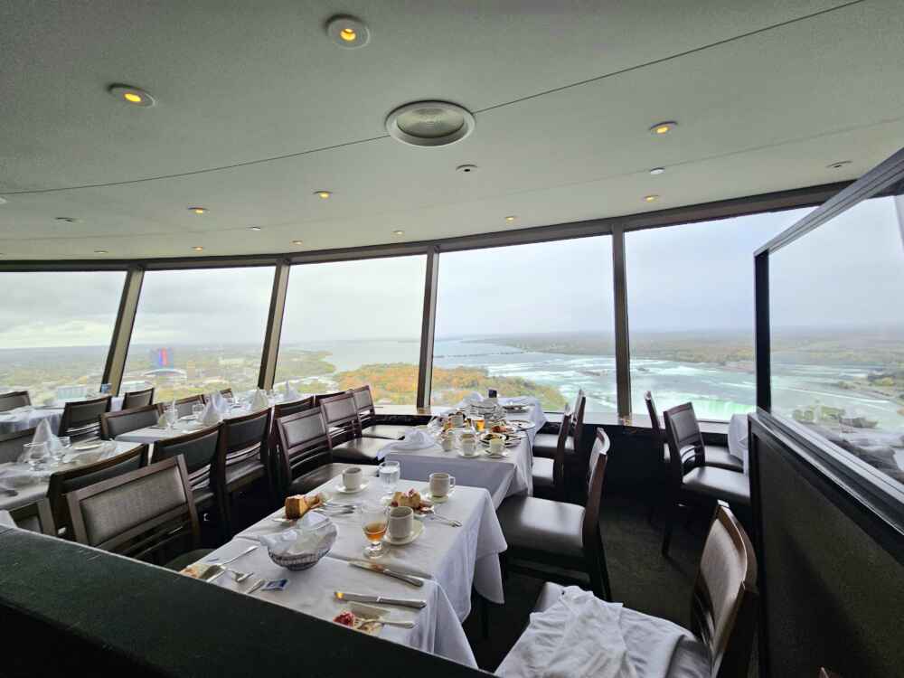 Por volta das 13h foi a hora do almoço. A See Sight Tours reservou um lugar para o grupo no Skylon Tower, que é uma torre que possui um restaurante giratório lá no alto.