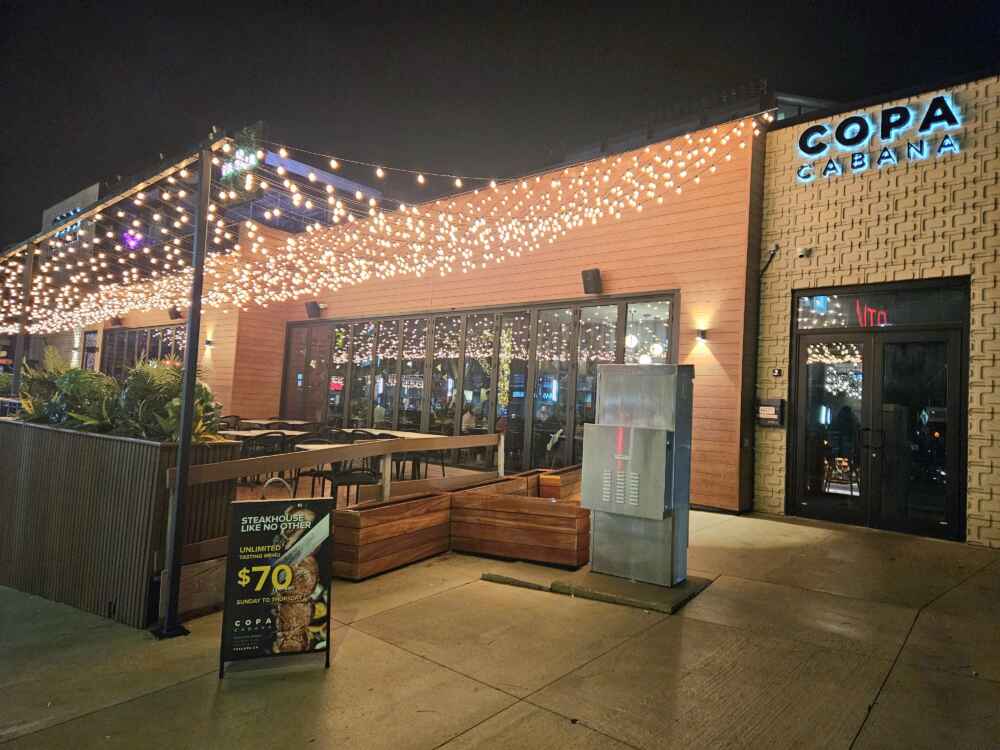 A Copacabana também funciona com rodízio, mas não tem buffet. Pedimos os acompanhamentos à la carte por um valor fixo( CAD 70,00 em novembro de 2025) e servem na mesa.