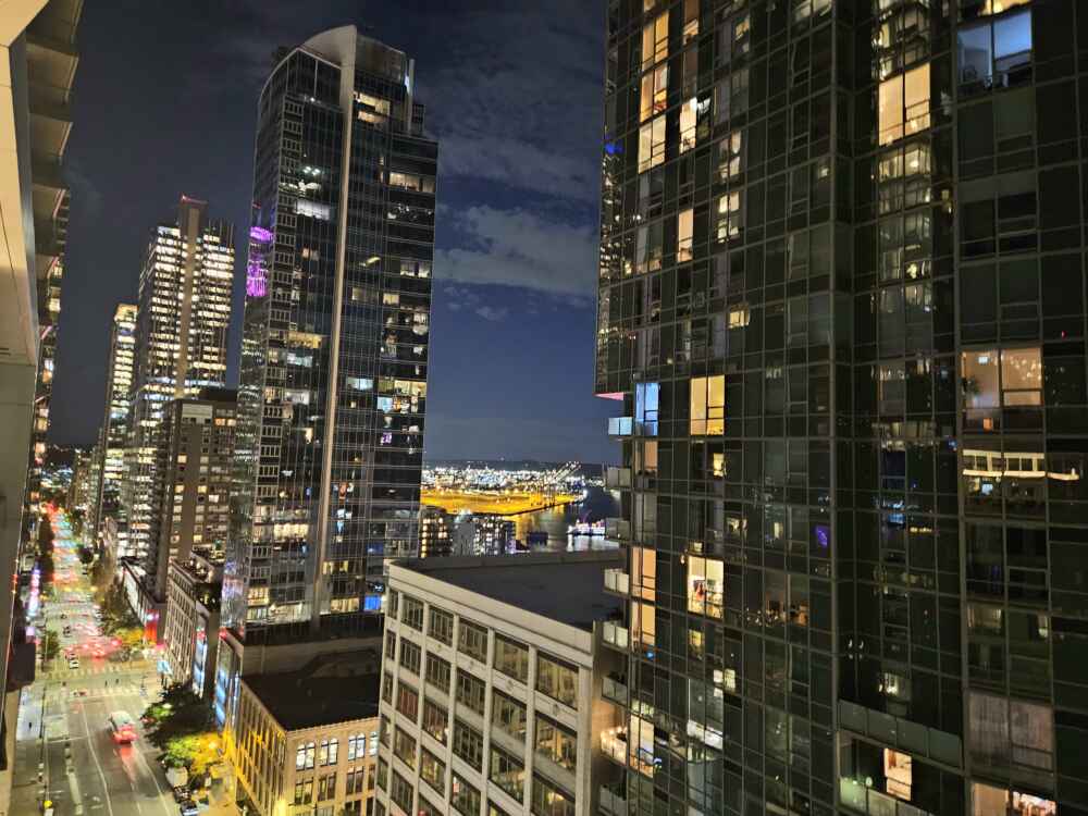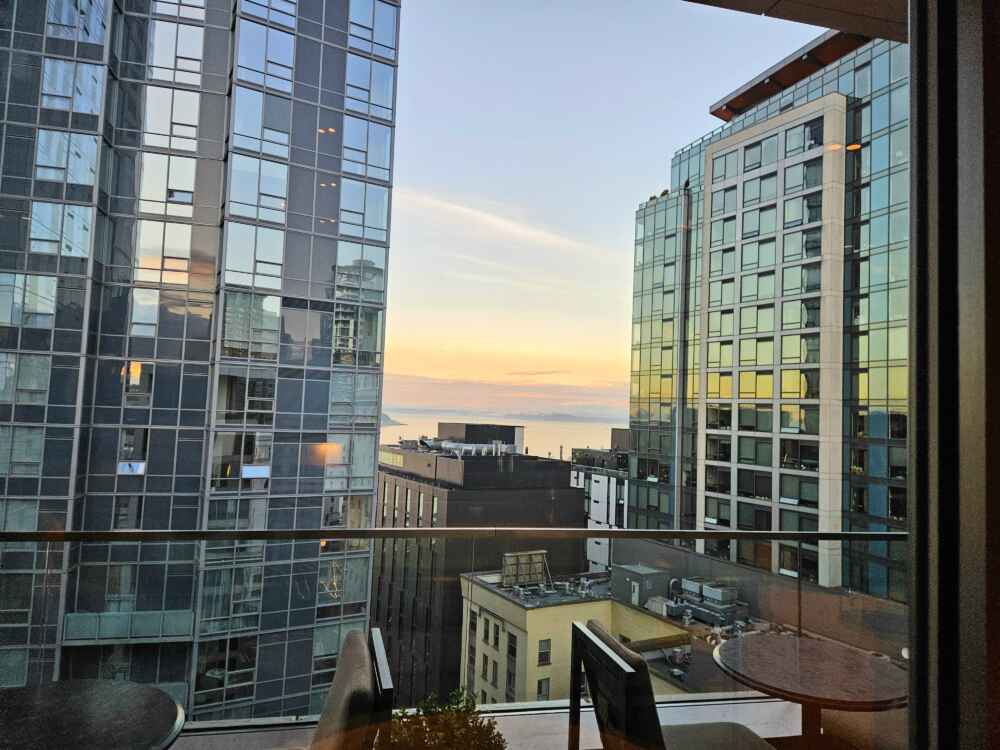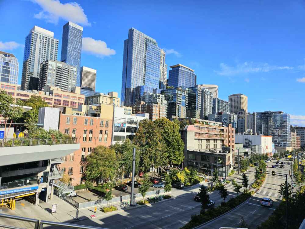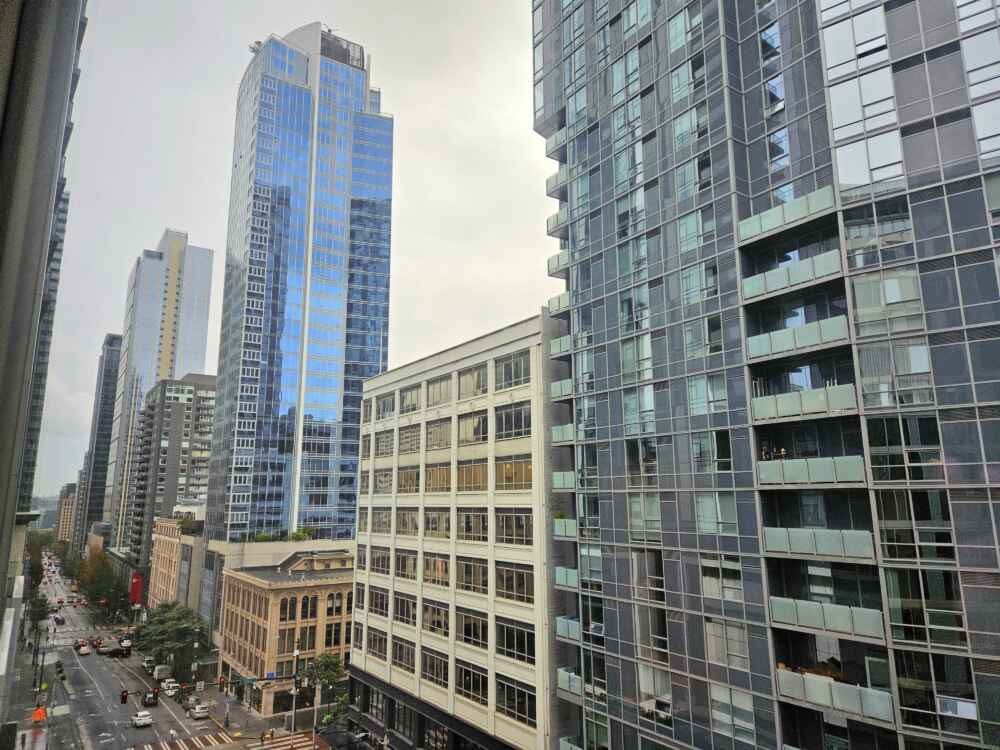 A vista do quarto é realmente bem bonita! Seattle tem muitos prédios modernos!