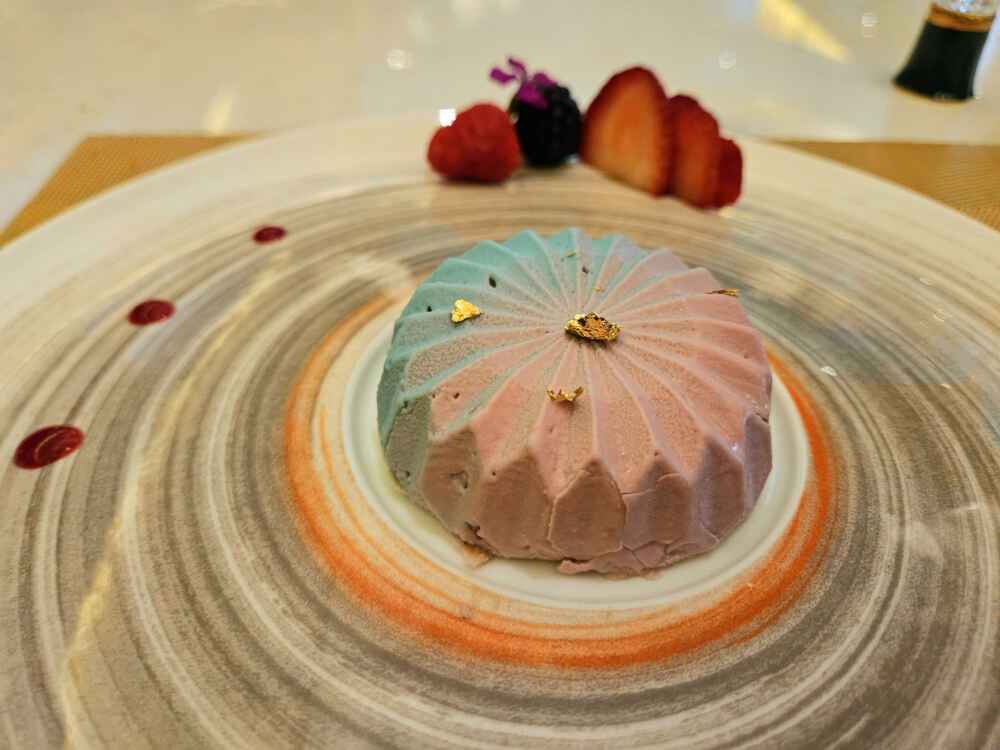 A sobremesa assim como todos os outros pratos também é ótima: Um mousse de coco com frutas.
