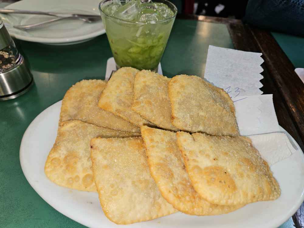 Uma sobremesa imperdível é Churritos de doce de leite, que são nachos adocicados bem crocantes com recheio extra. As quesadillas também vem recheadas com doce de leite e são muito boas.