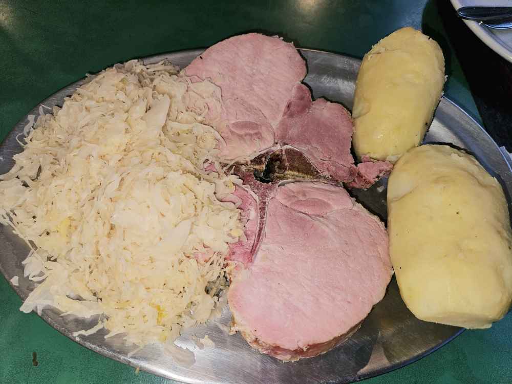 Sugiro experimentar Kassler, que é um prato típico alemão a base de carne de porco salgada e defumada, acompanhado de batata cozida e chucrute.