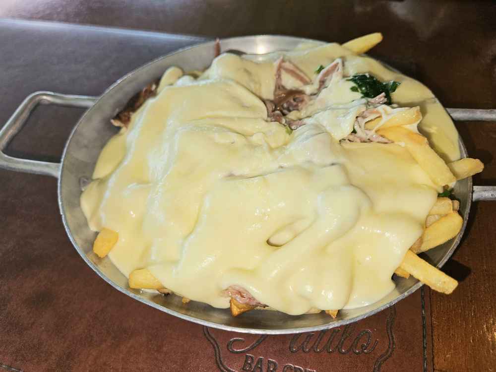 No cardápio tem comida polonesa, sul-africana, belga, brasileira e etc. Eu experimentei o Poutine, um prato canadense que consiste em uma porção de batatas fritas cobertas com queijo, que levam um molho a escolha do cliente.