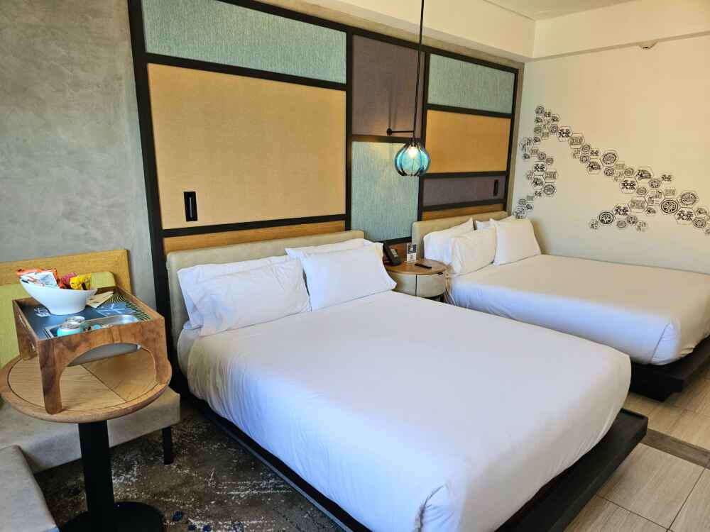 O Hotel conta com quartos com cama King e cama Queen. Eu escolhi uma acomodação com 2 camas e vista para o mar.
