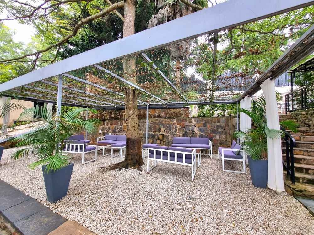 Com certeza a piscina é um diferencial do hotel, já que não são muitos hotéis em Kigali que contam com uma área aberta e piscina para se refrescar do calor: