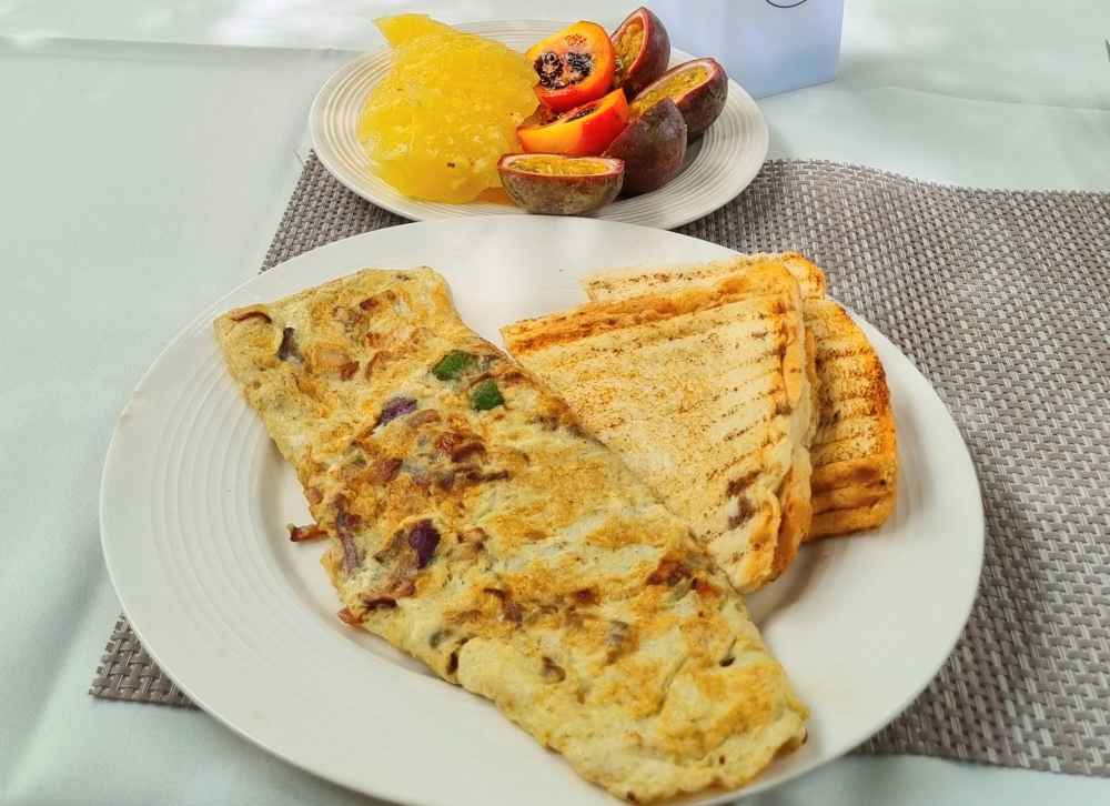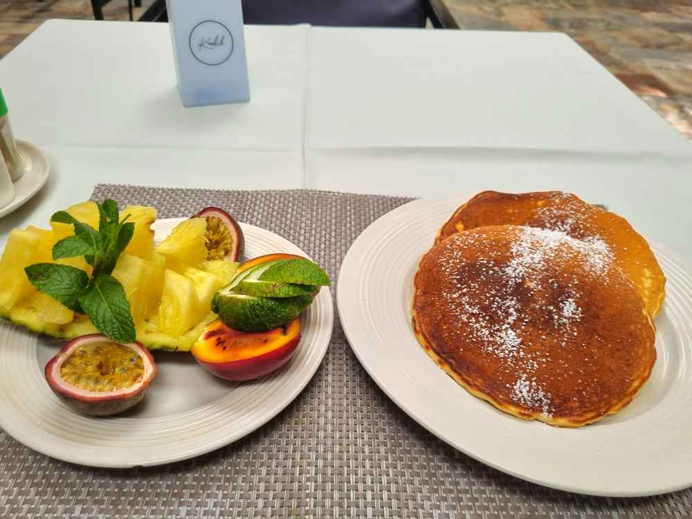 É incluso na diária café da manhã que varia todos os dias. Normalmente e oferecido prato com frutas, pães, ovos e panquecas.