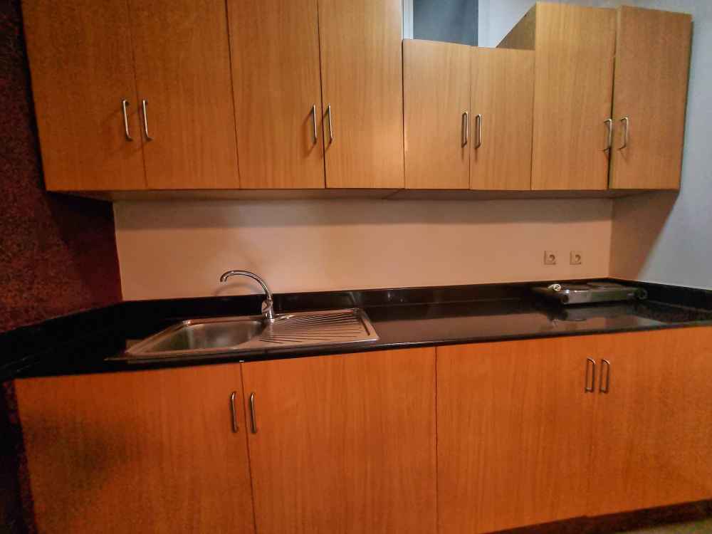 Há acomodações estilo apartamento. Além do quarto com cama de casal tem também uma sala com Tv e cozinha equipada com frigobar, forno e micro-ondas.