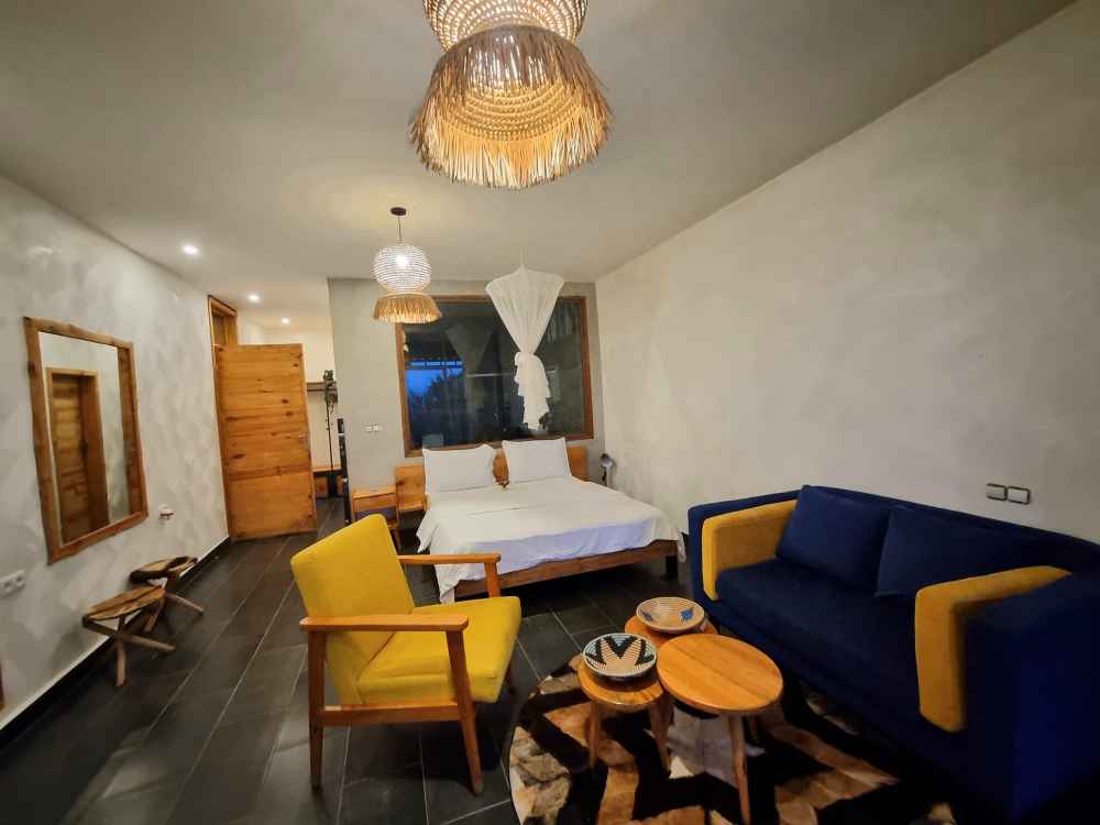 Os quartos são limpos e bem organizados. Eles contam com cama de casal, banheiro privativo e ventilador. Algumas acomodações também possuem varanda com vista.