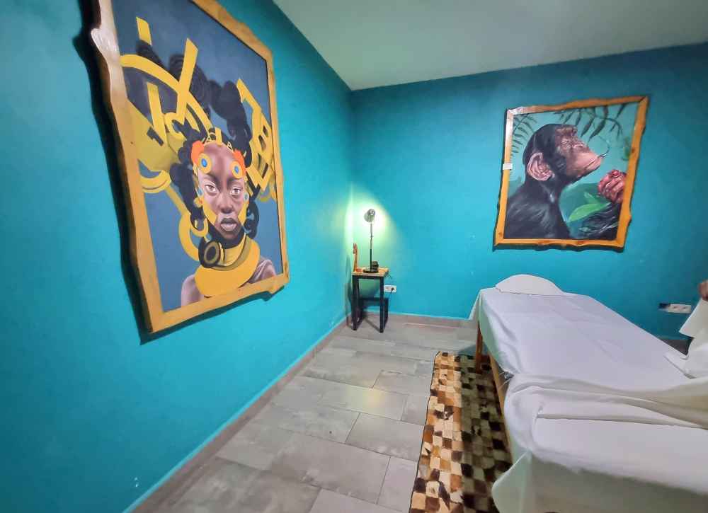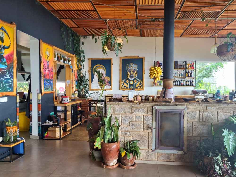 A decoração do Eagle View impressiona. A cultura africana é valorizada em quadros e enfeites.
