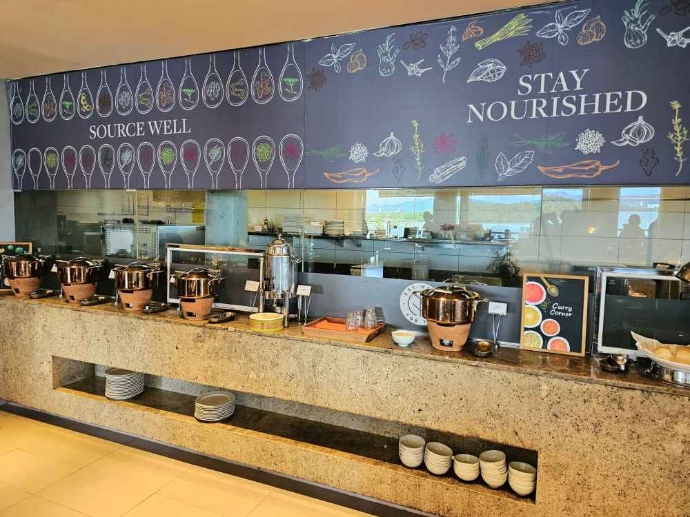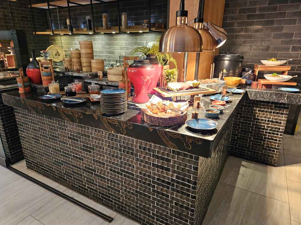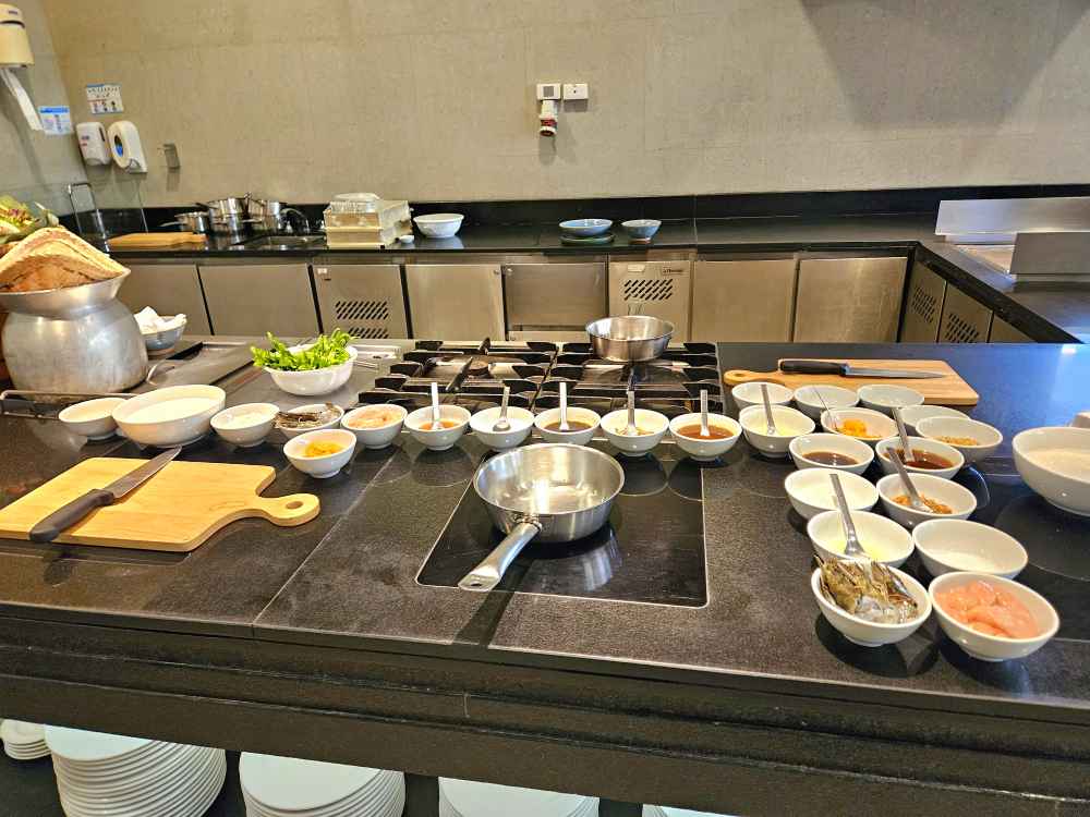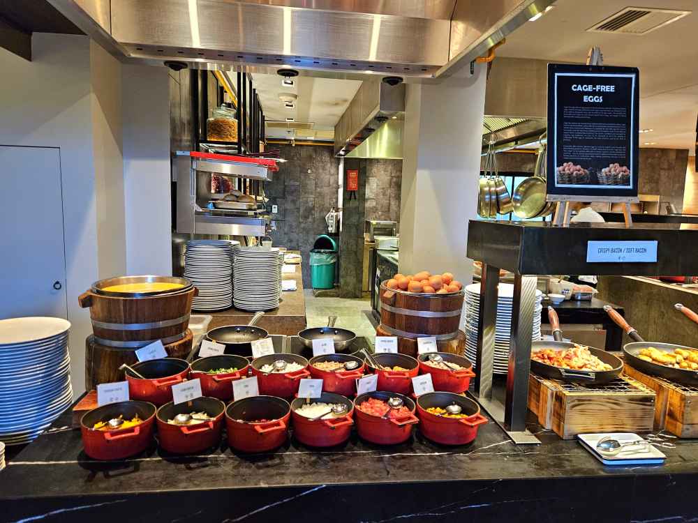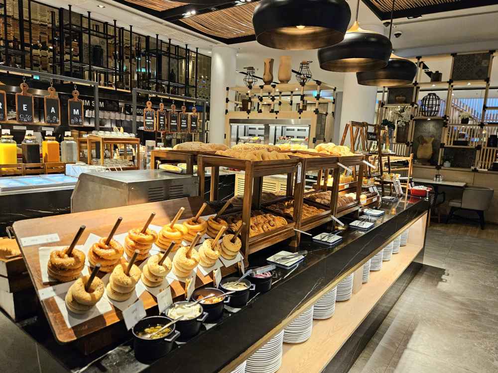 No J´s é servido o café da manhã estilo buffet, com várias opções ocidentais e orientais.