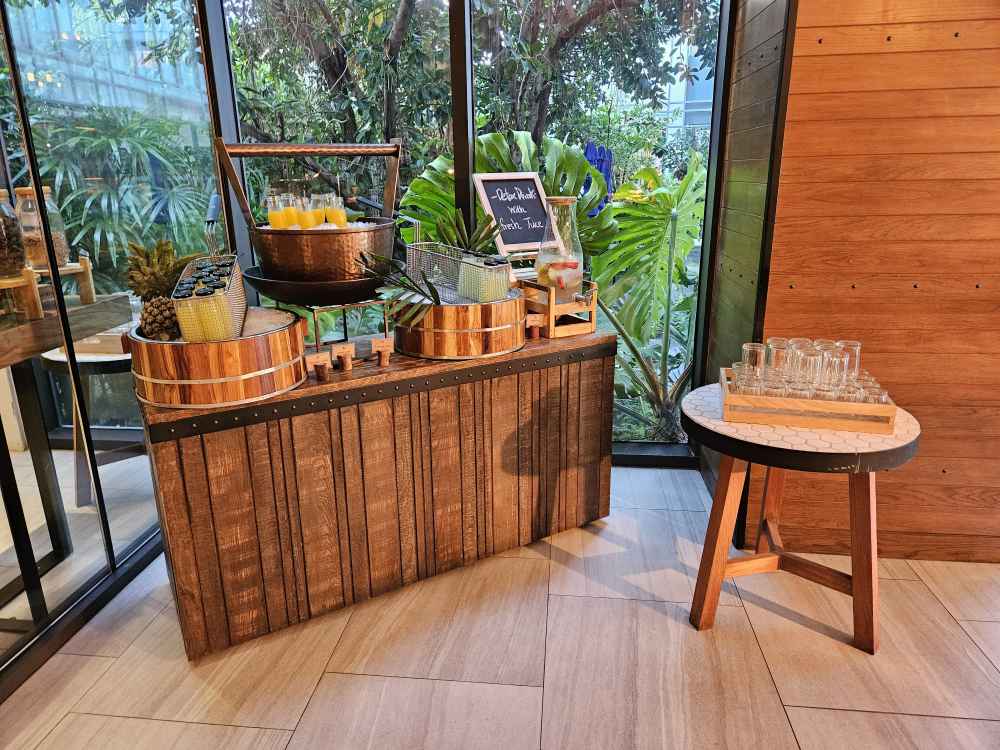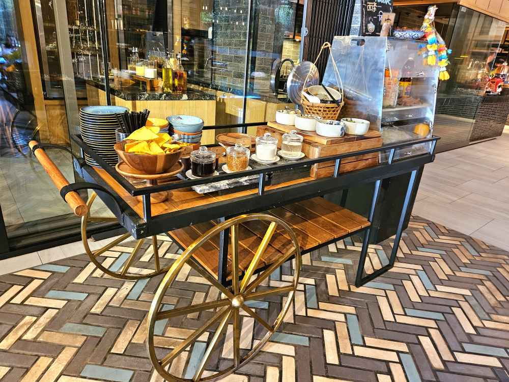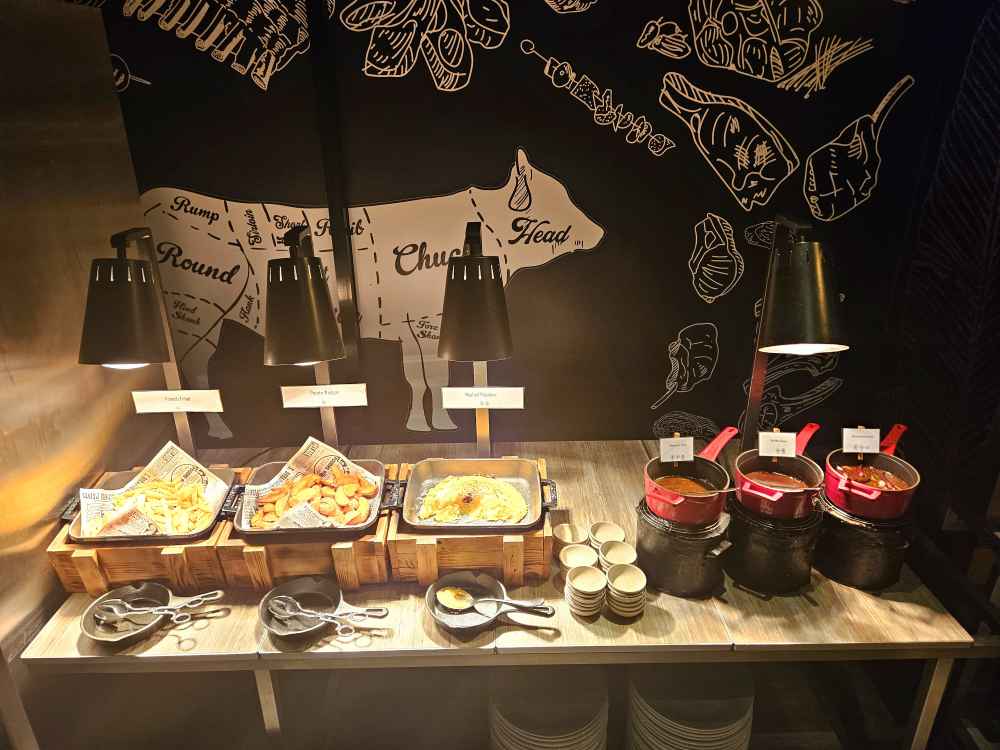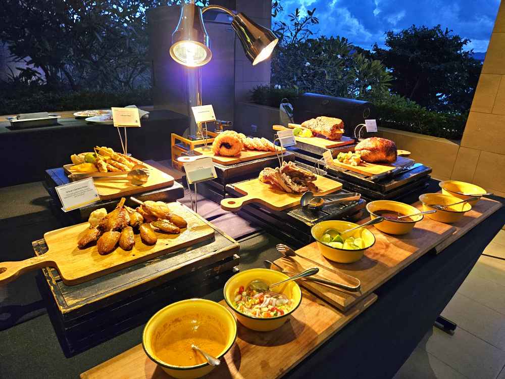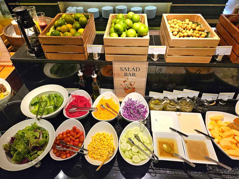 No J´s é servido o café da manhã estilo buffet, com várias opções ocidentais e orientais.