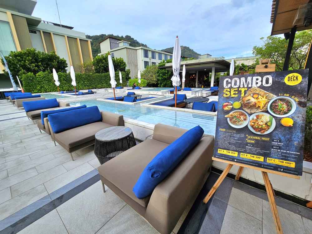 O hotel conta também com um restaurante/Beach club chamado The Deck. Tem uma piscina de frente para a praia lá. É possível pedir drinks, pratos e petiscos.
