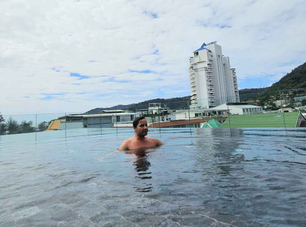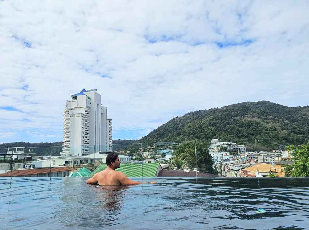 A piscina no rooftop é ótima para refrescar do calor que faz em Phuket: