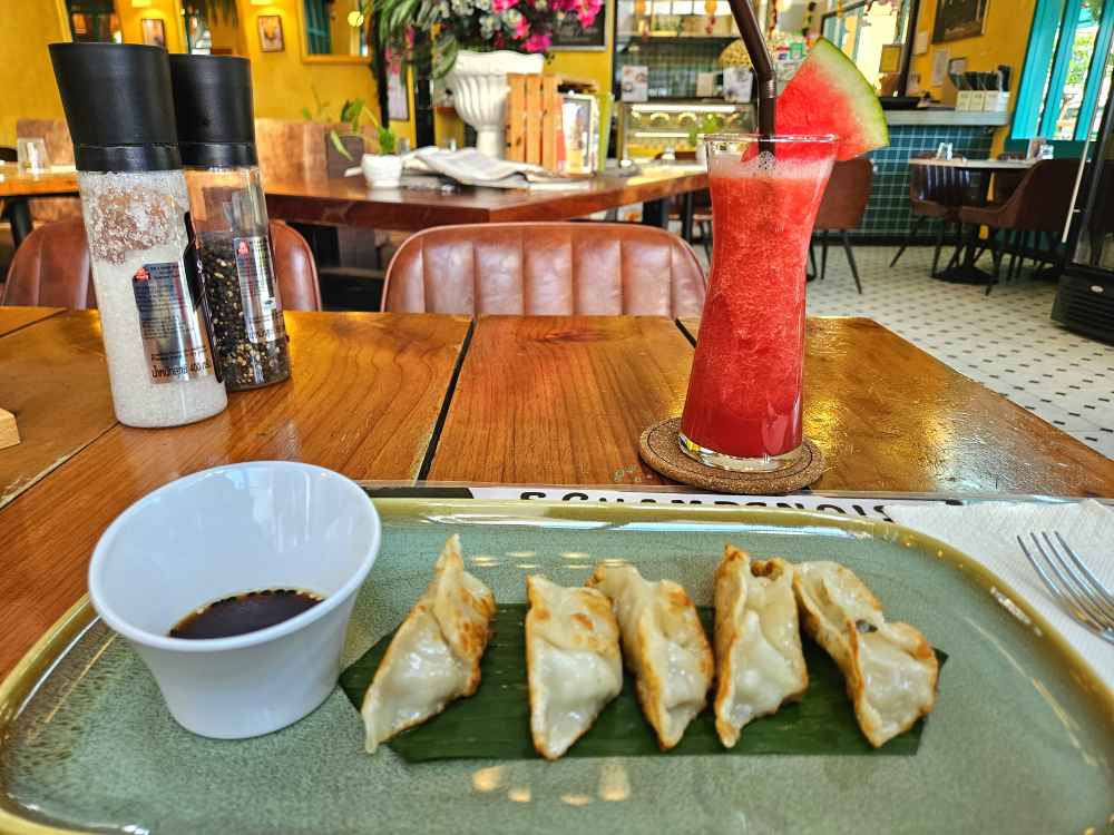 Eu comi uma Gyosa de carne de porco muito boa de entrada: