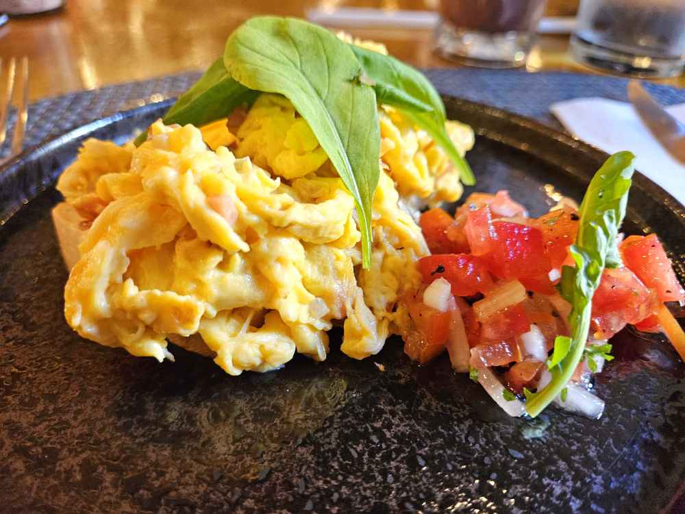 O café da manhã é servido no restaurante Seasonal Tastes e conta com opções de pães, frutas, iogurte, pratos quentes, doces e etc.