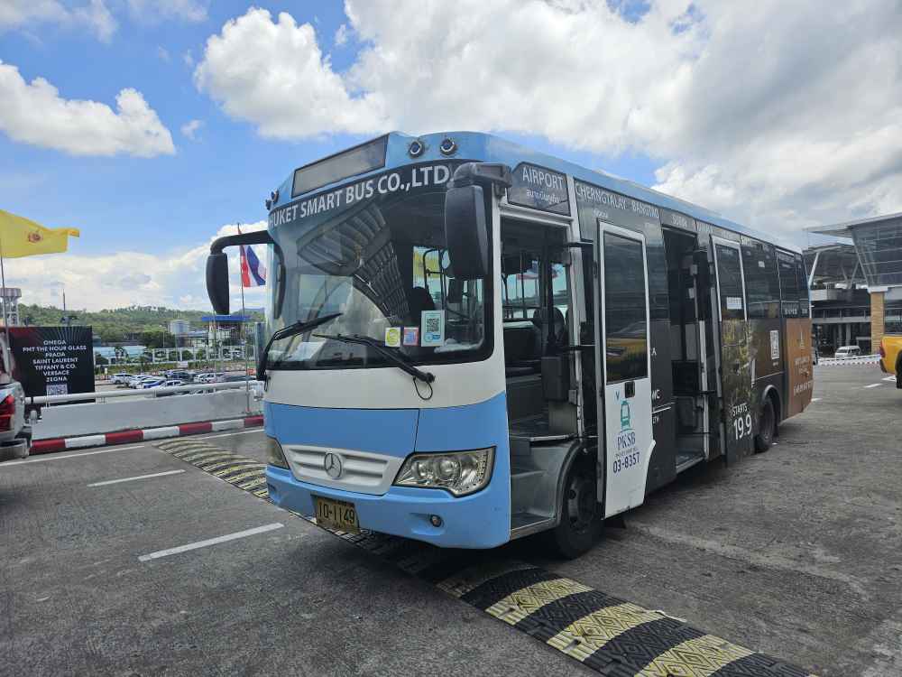 Chegando no aeroporto é possível pegar um ônibus amarelo por 100THB até Phuket Town( outubro 2024). O Trajeto dura em torno de 1 hora e 15 minutos, mas depende do trânsito e horário.