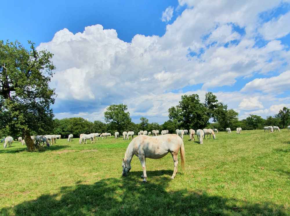 No caminho, ainda paramos para avistar os famosos cavalos brancos eslovenos chamados Lipizzan: