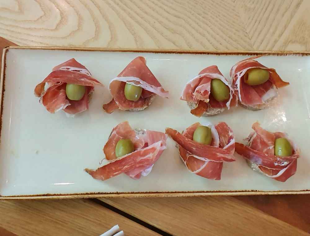 Depois disso, seguimos para um vilarejo e provamos o Prosciutto com vinho no restaurante tradicional Gostilna Muha.