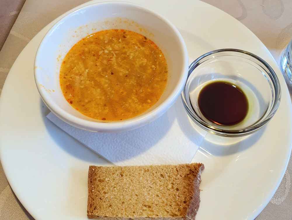 Dentre as entradas servidas, gostei bastante da sopa no pão e achei bem criativo: