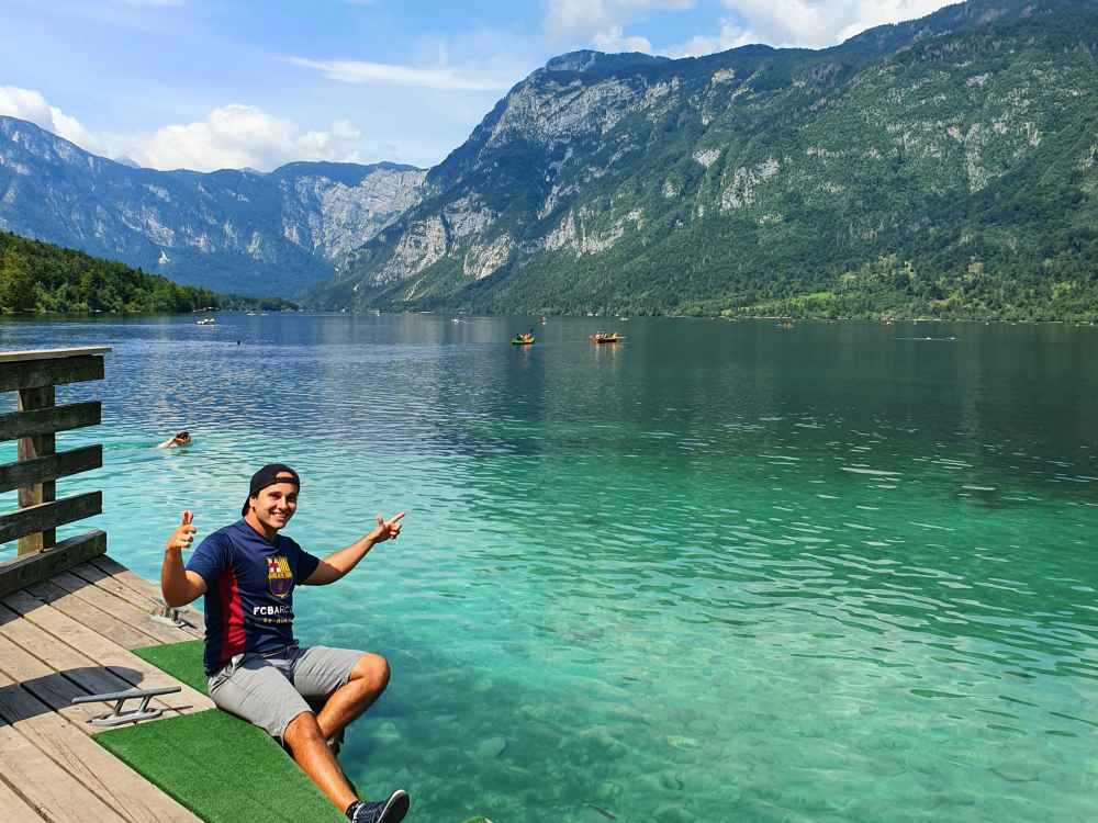 Depois seguimos para o Lago Bohinj. Lá podemos nadar! A temperatura, pelo menos no verão, estava agradável para entrar: