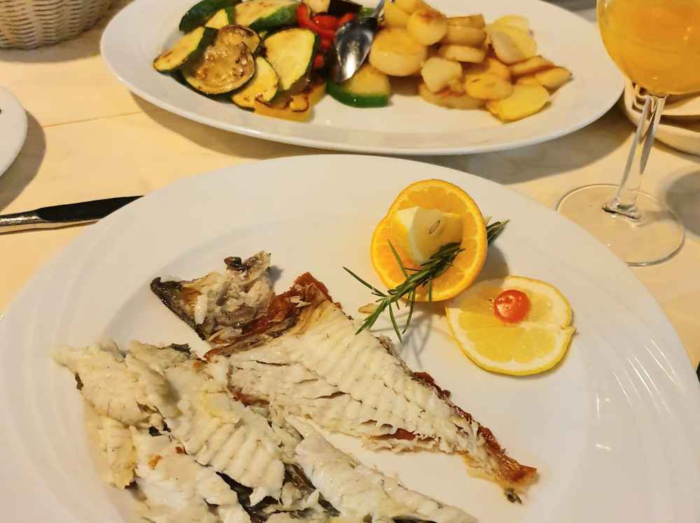 Em Portoroz, jantei no restaurante da Marina, o Marina Portoroz, e recomendo muito! Pude escolher dentre vários peixes e optei pelo Rombo: