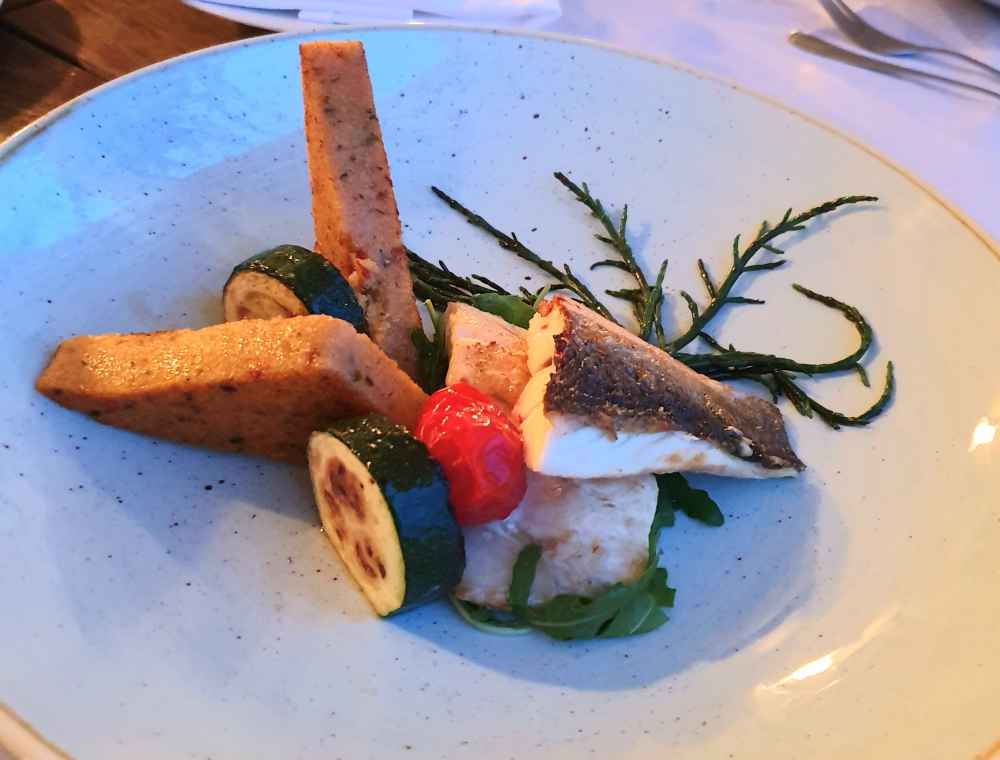 De prato principal, pedi o peixe Robalo com vegetais: